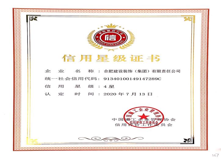 合肥金大地置业有限公司2020年度“优秀供应商”证书