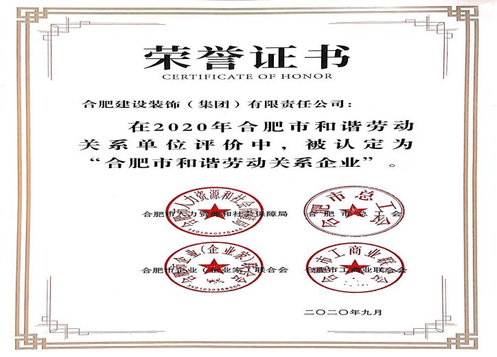 合肥市2020年劳动和技能竞赛第一届建筑信息模型职业技能竞赛优秀组织奖(施工组)