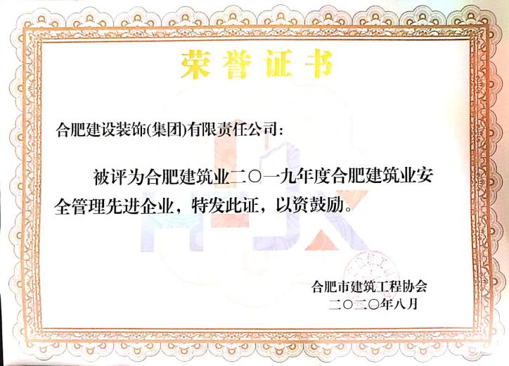 合肥市建筑业2019年度优秀项目经理——李宗成
