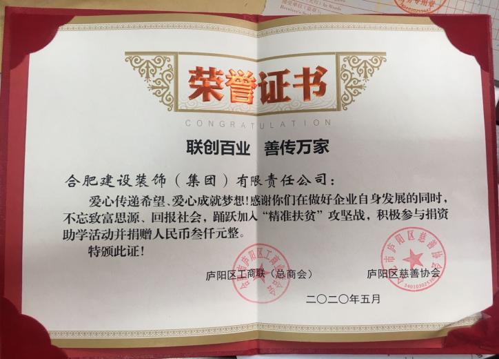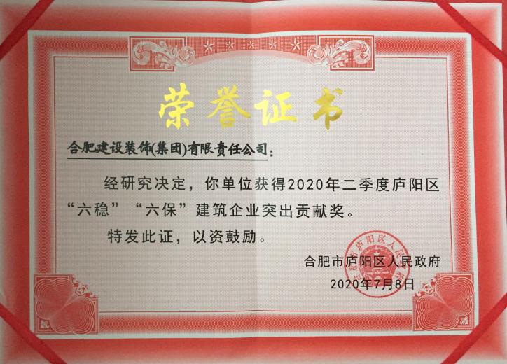 2020年二季度庐阳区六稳六保建筑业突出贡献奖