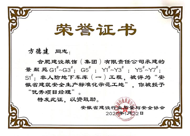 景粼苑G1#-G3:G5Y1-Y3;Y5-Y7;S1#;非人防地下车库(一)——方德建优秀项目经理