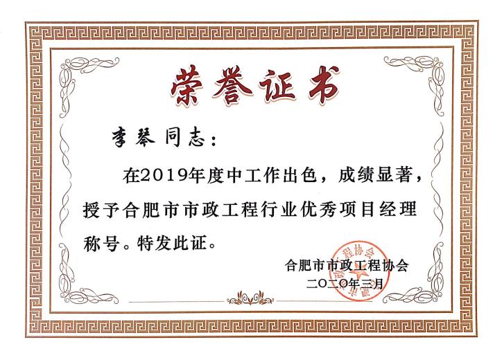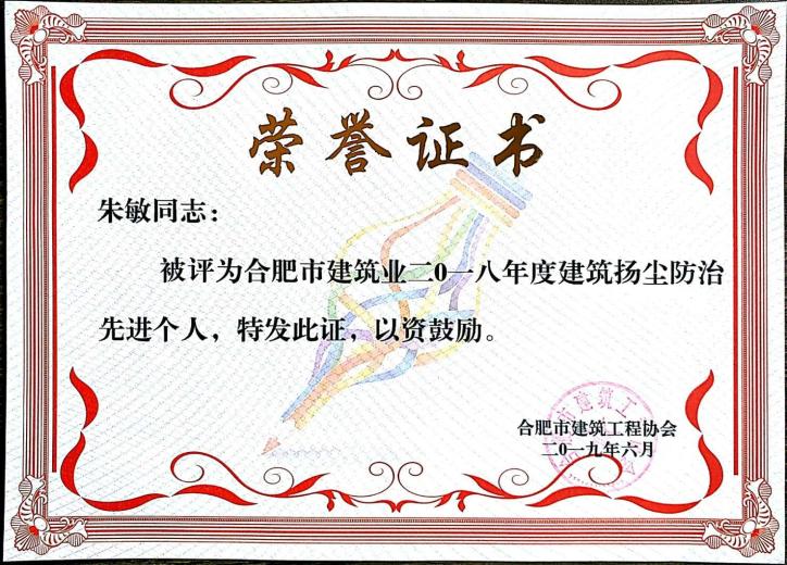 合肥市建筑业2018年度优秀项目经理——吴勇信