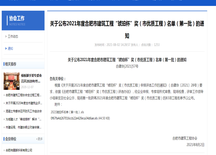 2021年度合肥市建筑工程“琥珀杯”奖(市优质工程)