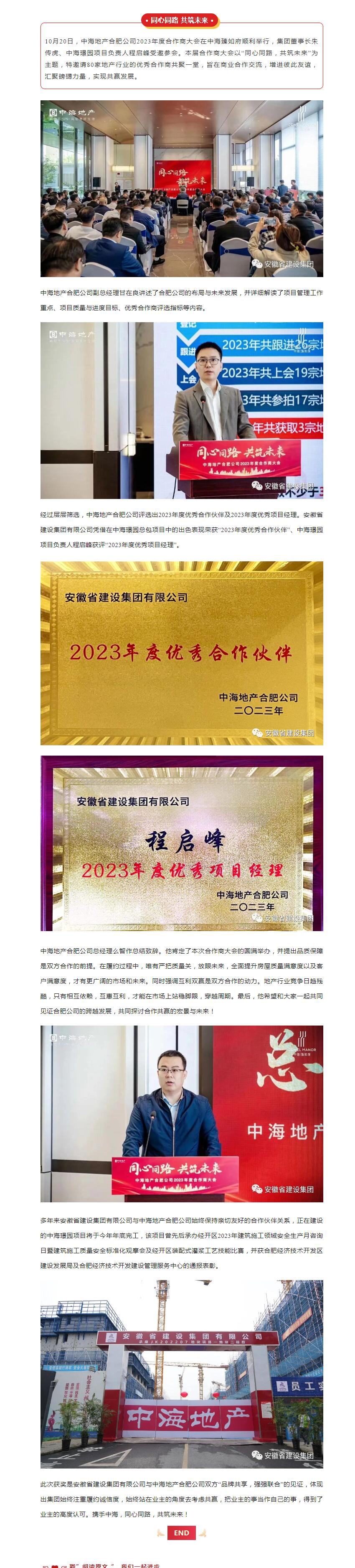 >同心同路 共筑未来|集团荣获中海地产合肥公司2023年度优秀合作伙伴